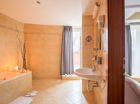 The rooms are equipped with individually adjustable air conditioning, LCD, SAT TV, PAY TV, radio, telephone, mini-bar, free WI-FI, laptop size safe, hair dryer, and the use of a bathrobe. Some rooms can be equipped with an extra bed.